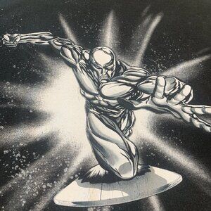 Vintage Marvel Mad Engine Shirt Silver Surfer Black Sz L