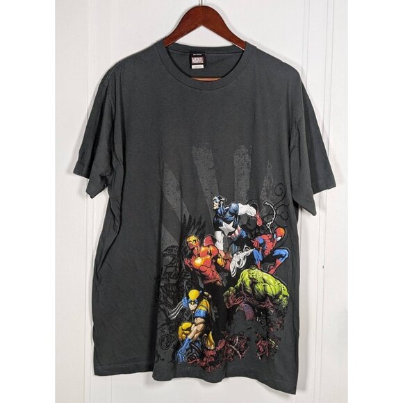 Vintage Marvel Tee Shirt Mens 2XL XXL Gray Mad Engine Avengers X-Men Y2K VTG. Measures approximately 26" armpit to armpit and 29" in length down the middle of the back