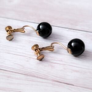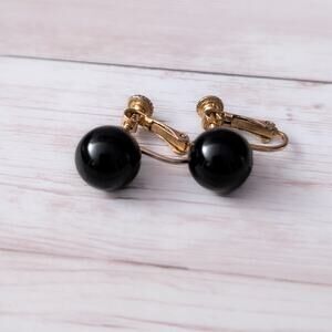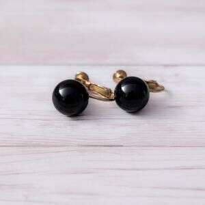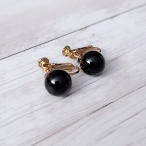 Vintage Marvella Clip On Earrings Black Ball Just Under 1/2"