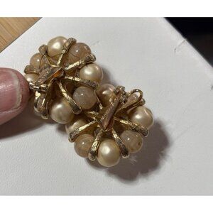 Vintage Marvella Clip-On Earrings With Faux Pearl & Swirled Bead Design