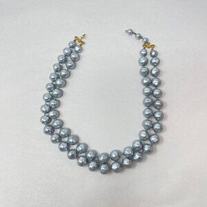 Vintage Marvella Double-Strand Gray Faux Pearl Necklace Gold-Tone Bow Closure