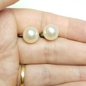 Vintage Marvella Faux White Pearl Clip On Earrings, Small Classic Minimal Estate