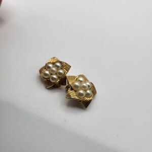 Vintage Marvella Gold Star with Pearl Center Clip on Earrings