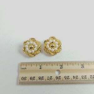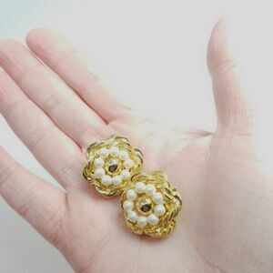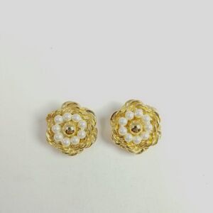 Vintage Marvella Gold Tone Faux Pearl 80s Style Clip On Earrings, Retro Flower