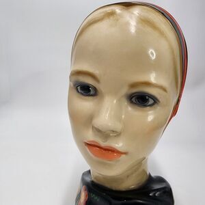 Vintage Marwal Dutch Scandinavian MCM Chalkware Plaster Girl Head Bust 8.5" Tall