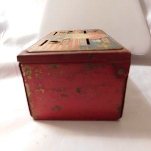 Measures approx. 5 3/4" x 3 1/2". Top features the US Capital, Marx Toys logo, slots for paper/coin money.