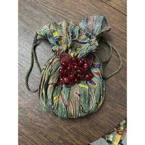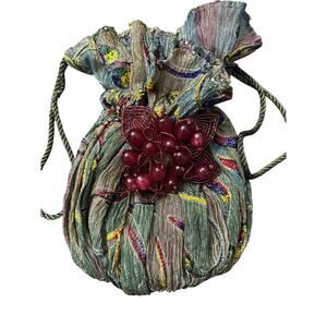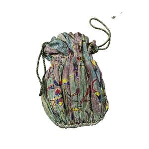 Vintage Mary Frances 9” Silk Drawstring Crossbody Pullstring Bag