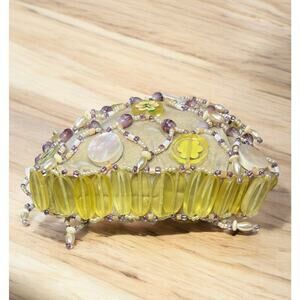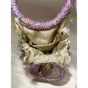 Exterior – Soft shell, mother of pearl and purple roped beading, painted floral beads and round beaded top handles.