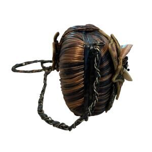 • Features: Brown, Tan, Multicolor, Beaded, Flower Embellished, Chain Crossbody Strap, Magnet Closure