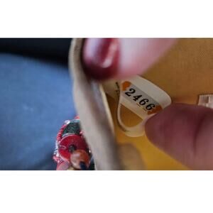 The purse is beaded and embellished with a metal beaded frame. It has a hanging detail with a missing bead - this is the only missing bead or embellishment.