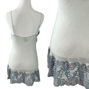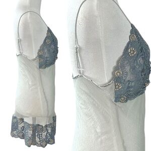 Vintage Mary Green Sheer Mesh & Lace Fairy Slip Dress Nightie Top Small Grey