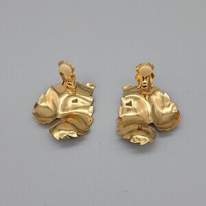 Vintage Mary Kay Large Gold Leaf Shape Clip-on Earrings 80's Bling