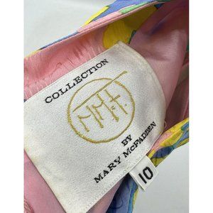 Vintage Mary McFadden Collection Pastel Floral Silk Dress Embossed Shoulder Pads. Please see pics for measurements and details. Great preowned condition and from smoke free home.