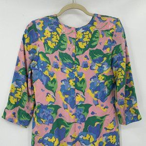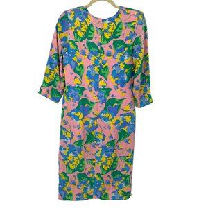 Vintage Mary McFadden Collection Pastel Floral Silk Dress Embossed Shoulder Pads
