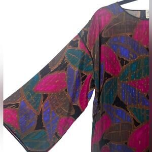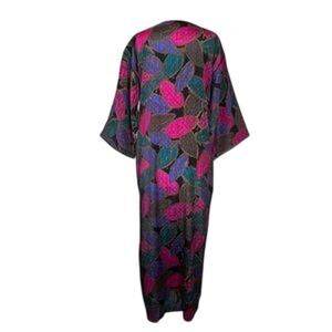 Vintage Mary McFadden Iconic Caftan Dress Small Floral Jacquard Kimono Sleeve