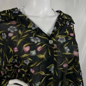 Vintage Mary McFadden Sheer Black Floral Blouse - Size 24W - One Button at top near collar - long sleeve - bell sleeves - great vintage condition! No flaws to note!