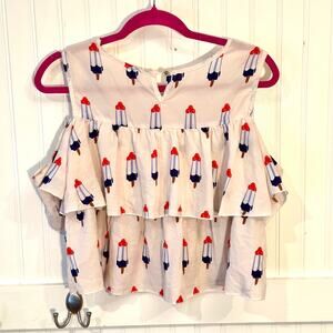 Mary Quant popsicle/rocket/bomb pop red, white and blue cropped, tiered top with