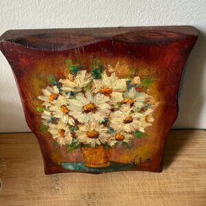 Vintage Mary Vickers Oil Painting on Wood Plaque White Daisy Floral Still Life