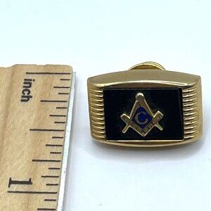 This vintage lapel pin features a classic Masonic square and compass emblem. It's gold-tone and intricate design reflects timeless elegance. Ideal for collectors or enthusiasts of Masonic memorabilia, this piece serves as a notable representation of fraternity values.
