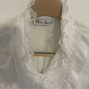 Vintage Mass Appeal Blouse Shimmer White US Large Ruffle Victorian Lace Dramatic