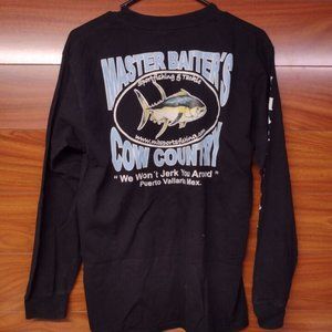 Offered here is this Vintage Master Baiters Sportfishing & Tackle Cow Country Long Sleeve T Shirt SzM.