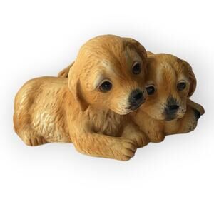 Golden Retriever Puppies Figurine Homco Masterpiece Porcelain 1987 Signed 1987