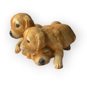 Vintage Masterpiece Porcelain 3 Golden Retriever pups by Homco 1987