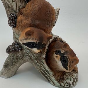 Vintage Masterpiece Porcelain Homco Raccoons on Trunk