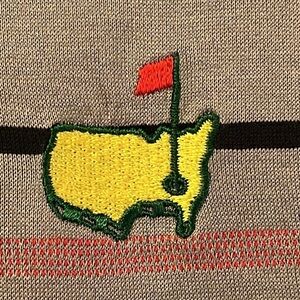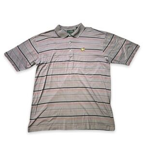 Vintage Masters Golf Logo Polo Amen Corner Pima Cotton Gray Red Striped Medium
