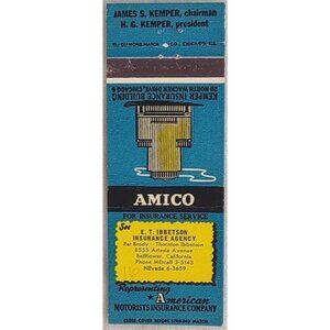 Vintage Matchbook Cover AMICO Kemper Insurance Building Chicago IL Illinois