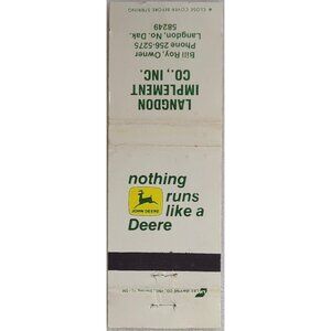 Vintage Matchbook Cover Langdon Implement CO John Deere ND North Dakota