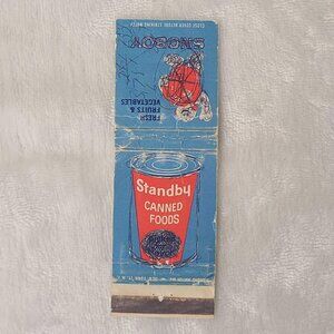 Vintage Matchbook Cover Standby Canned Foods Snoboy NY New York