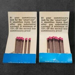 2 Commissary owl matchbooks with Save 15% or More backs (both struck)