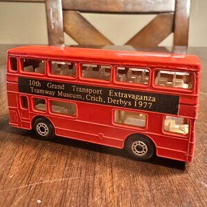 Collectible die-cast double-decker bus featuring "The Londoner" design. Special edition honoring the 10th Grand Transport Extravaganza in 1977.