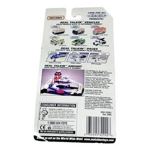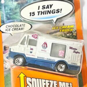 Introducing a Vintage Matchbox Real Talkin' Ice Cream Truck from 1998, in white die-cast. This collectible truck is new in packaging and features realistic detailing and interactive talking functions, making it a great addition for collectors and fans of classic Matchbox vehicles. Item is new and working.