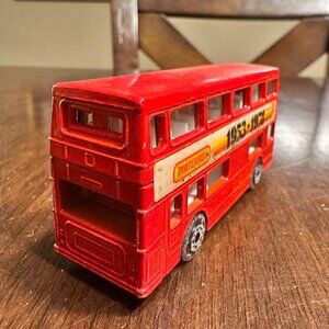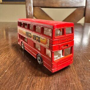 Collectible Matchbox die-cast double-decker bus. Comes with box. A nostalgic item for enthusiasts or display collectors.