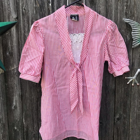 Red and white vintage Maternity blouse Tie detail with white doile Some marks around white area. Will be washed before sent Smoke free home Pet friendly