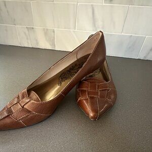 Elegant and timeless Matisse leather kitten heels in a rich cognac-tan hue ๐ค with woven leather upper. Beautifully crafted with that signature vintage sophistication โ perfect for both dressy and casual looks.