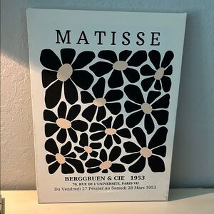 Stylish Matisse art print featuring bold black floral patterns. With Beige Center