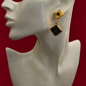 These elegant earrings feature a striking combination of gold and black, perfect for adding a touch of sophistication to any outfit.