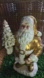 Vintage World Bazaars Gold Tone Santa carrying a tree and bell. Glossy white with a matte gold. Vintage 1999.