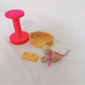 Vintage Mattel 1980’s Barbie Fluff Cat Kitten Lot Bowl,Kitty,Bed & Scratch Stand