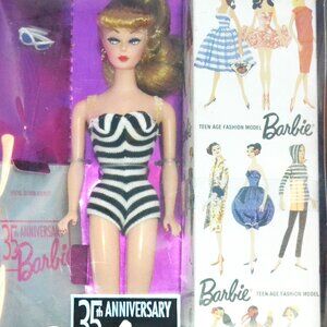 Mattel released this Barbie Doll in 1993. It is the 35th anniversary reproduction of the original and done in 1959 packaging. There is the original price tag from