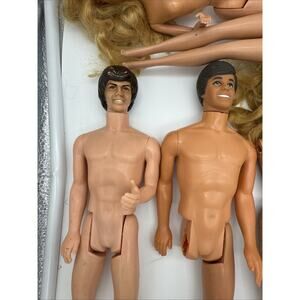 This vintage Mattel Barbie doll lot includes 7 dolls from the 70s and 80s, featuring characters like Ken and Donny. These fashion dolls have blonde hair and are part of the Superstar Barbie product line. Perfect for collectors, this set of vintage dolls captures the essence of 1970s and 1980s Barbie fashion. Made by the renowned brand Mattel, this lot of dolls is a nostalgic trip back to a bygone era of doll play.