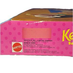Vintage 1996 Mattel Kelly Nursery School playset, item #67535. This set includes a colorful classroom with desks, chairs, blackboard, play mats, toys, and accessories for Kelly and her friends (dolls not included). Designed as part of the Barbie line featuring Kelly, Barbie’s baby sister, this playset recreates a fun-filled day at nursery school with imaginative details. Box remains sealed with bright, vibrant graphics and only minor shelf/storage wear. A must-have for Barbie collectors, ’90s toy enthusiasts, or anyone looking to complete their vintage Kelly and friends collection. Harder-to-find original Arcotoys/Mattel release.