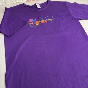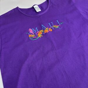 Vintage Maui Destination 90’s T Shirt Sz L Embroidered Purple Single Stitch USA