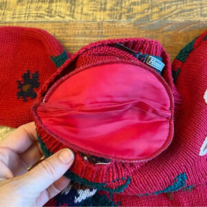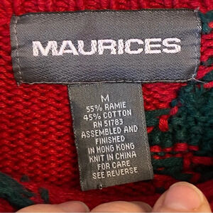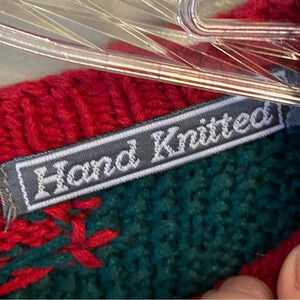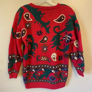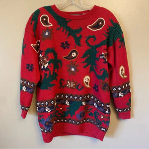 Vintage Maurices Hand Knit Sweater size Medium red green paisley 80s 90s