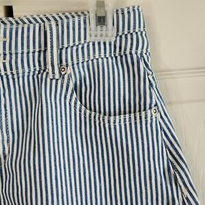 Vintage Maurices Womens Blue White Striped Denim Mini Skirt Size 0 Y2K Engineer