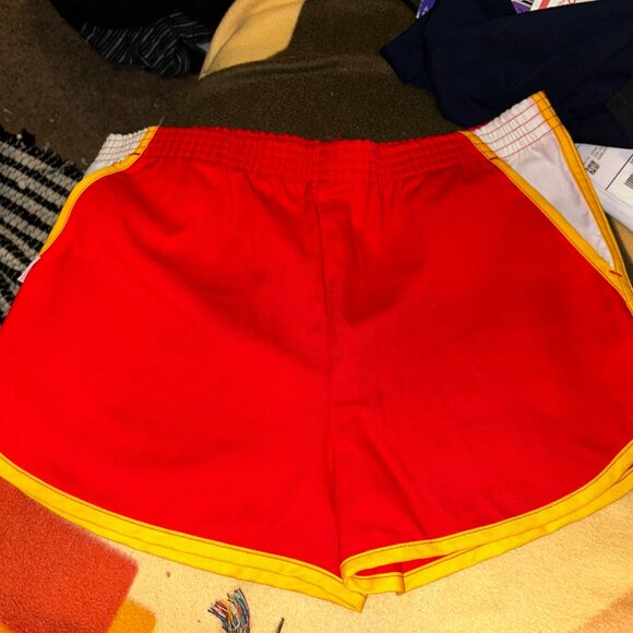 Vintage Maverick 70's Dolphin Shorts Red/White/Yellow w. Piping Large 36-38