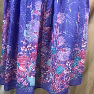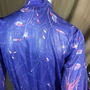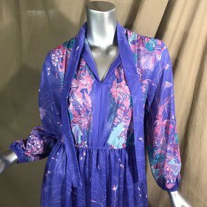 Vintage Mavinette Dress Women's Small/Medium Purple Pink Blue Floral Pattern 3/4 Sleeves.